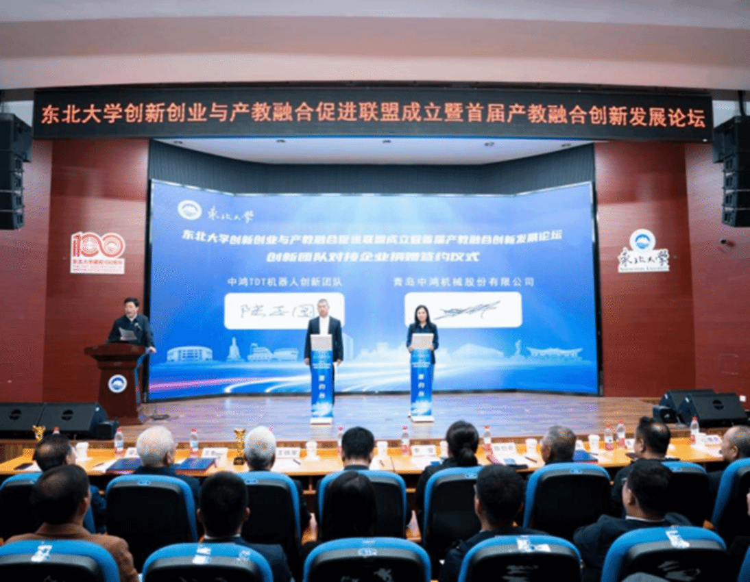 青岛中鸿沉型机械股份无限公司取中鸿T-DT机械人立异团队签订捐赠和谈,青岛中鸿公司将继续正在将来五年每年赞帮20万元,专项支撑团队开展科研取人才培育。