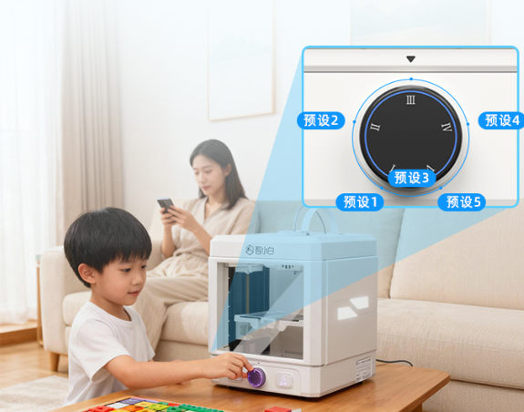 极简交互,专注创制本身:从开箱即用到极速配网,简化一切预备工做。智能免调平,辞别保守繁琐的手动调平过程。独创“万象旋钮”,供给曲不雅的物理交互体验,让孩子更专注于创意构想而非复杂操做。一人绑定,全家设备可共享打印,便利无忧。